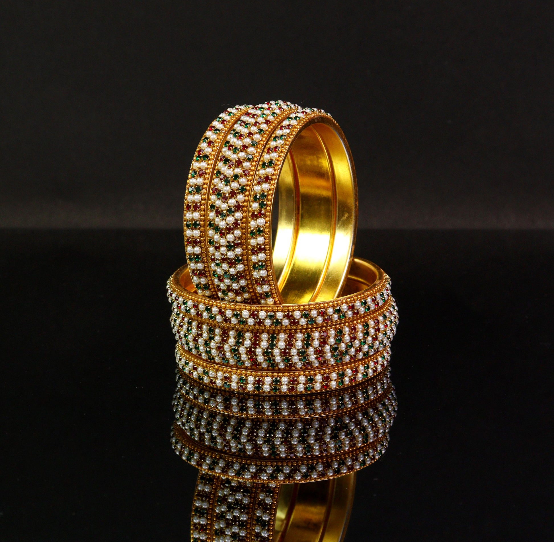 Handmade Designer Bangles with pearls – Traditional & Trendy Set for Women and Girls pack of (6)